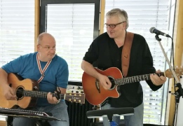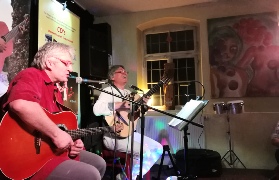 Hans Wild, gelernter Konditor und seit über 30 Jahren als Kleinkunstkneipen-Wirt und Musikus auf allerlei Bühnen zu gange, hat stets einen flotten, passenden Song parat und musikalische Freunde, die ihm zur Seite stehen wenns drauf ankommt.